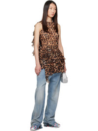 Lightweight woven silk minidress. Floral leopard pattern printed throughout. · Round neck · Ruffled asymmetrical hem · Zip closure with hook-eye at side seam · Cape-style panel with ruffles at back Supplier color: Leopard peony 100% silk. Made in United States 252236F052000