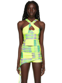 Stretch Repreve® recycled polyester jersey top. Graphic pattern printed throughout. · Fixed criss-crossing shoulder straps · Keyhole at chest · Full mesh lining Available exclusively at SSENSE. Supplier color: Lime plaid