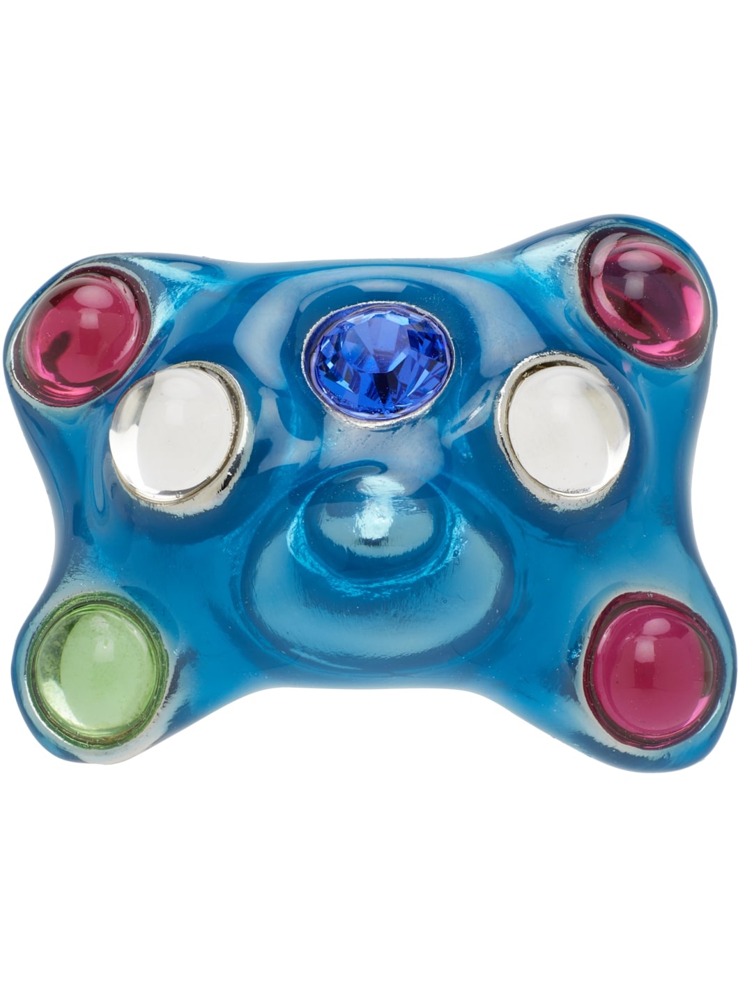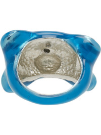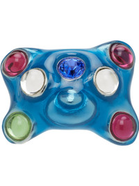 Hand-enameled recycled pewter ring in blue. Deadstock Swarovski crystals at face. Supplier color: Turquoise Recycled pewter, enamel, crystal. Made in United States 252236F024001