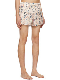 Quick-drying polyester taffeta swim shorts. Graphic pattern printed throughout. · Drawstring at elasticized waistband · Two-pocket styling · Vented outseams · Partial mesh lining Supplier color: Pearl currents 100% polyester. Made in Portugal 241583M208002