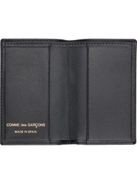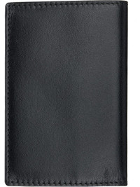Buffed leather bifold card holder in black. · Two card slots at interior · One note slot · Grained leather lining · H4.25" x W2.75" Supplier color: Black Leather. Made in Spain 252230M163001
