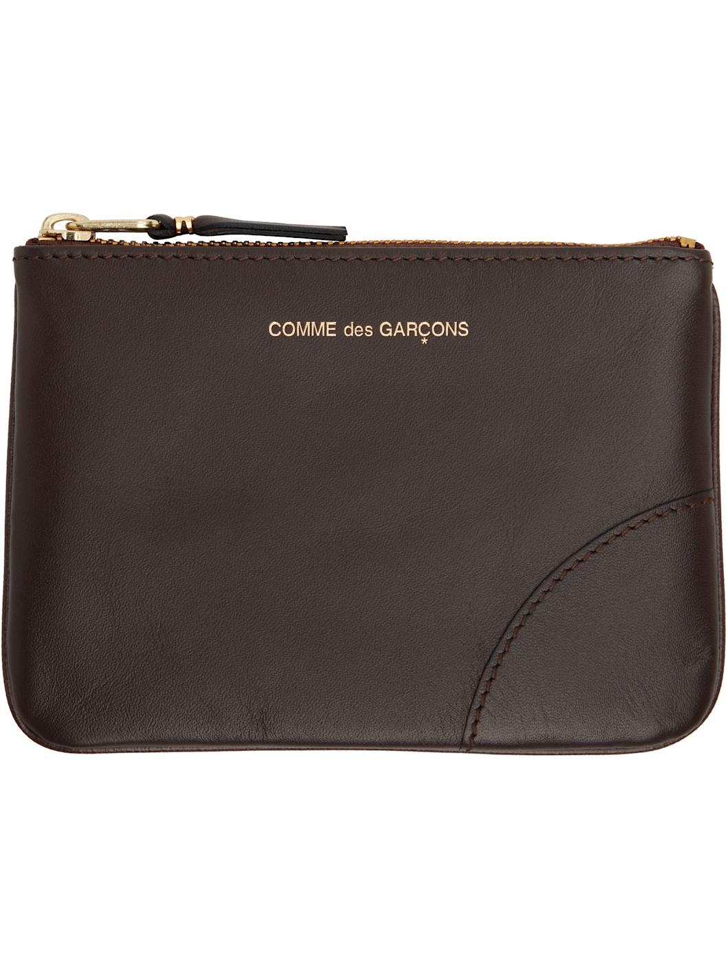 Buffed leather pouch in brown. · Logo stamp at face · Seam at face and back face · Zip closure · Suede interior · Logo-engraved gold-tone hardware · H4" x W5.5" Supplier color: Brown Leather. Made in Spain 252230F045001