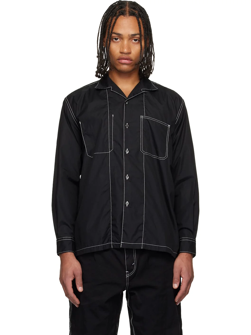 Cotton broadcloth shirt. · Spread collar · Button closure · Patch pocket at chest · Vented hem · Buttoned barrel cuffs · Twin pleats at back yoke · Contrast stitching in white Supplier color: Black 100% cotton. Made in Japan 252057M192009