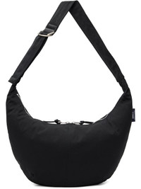 Satin messenger bag. · Leather trim throughout · Adjustable crossbody strap · Logo flag at side · Two-way zip closure · Patch pocket at interior · Camo-patterned lining · H11" x W19" x D4" Supplier color: Black Textile. Made in Japan 252057M170003