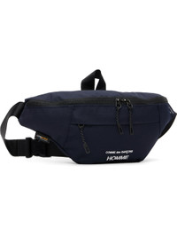 Matte-coated CORDURA satin messenger bag. · Leather trim throughout · Adjustable crossbody strap · Logo flag at side · Two-way zip closure · Patch pocket at interior · H11" x W19" x D4" Supplier color: Navy Textile. Made in Japan 252057M170000