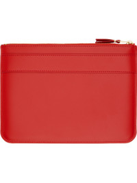 Buffed leather pouch in red. · Bow accent and logo stamp at face · Zip closure · Grained leather lining · Logo-engraved gold-tone hardware · H6.5" x W8.75" Supplier color: Red Leather. Made in Spain 252230F045008