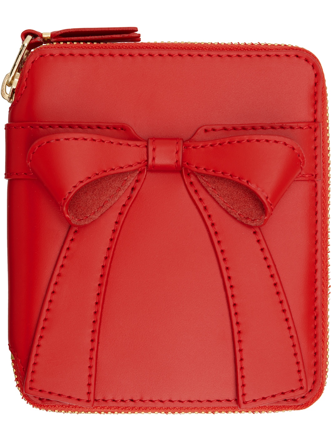 Buffed leather wallet in red. · Bow accent at face · Zip closure · Four card slots at interior · One patch pocket · One note slot · Press-stud coin compartment · Grained leather lining · H4.75" x W4.25" x D1" Supplier color: Red Leather. Made in Spain 252230F040011