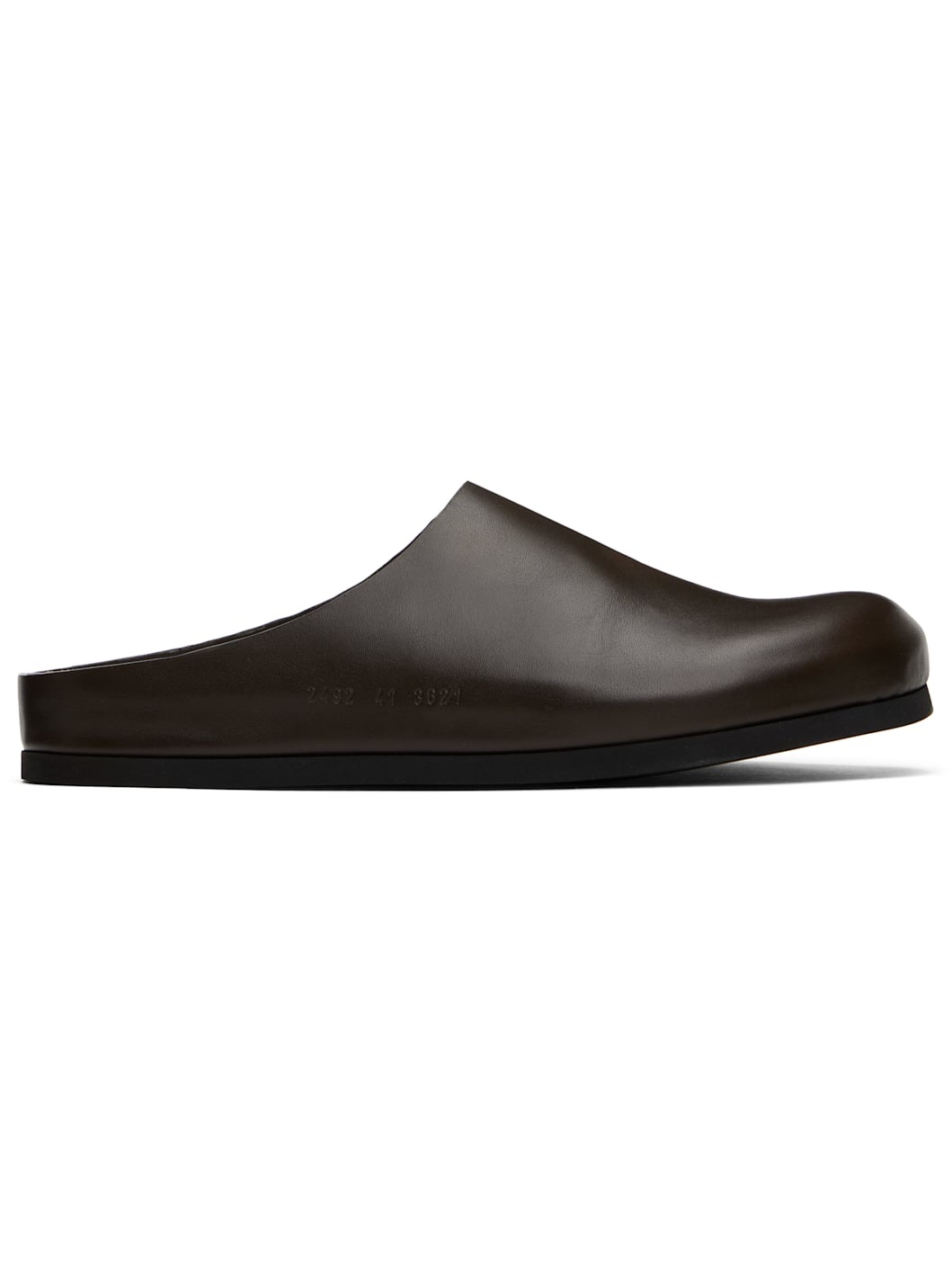 Buffed leather slip-on loafers in brown. · Signature series stamp at outer side · Molded suede footbed · Buffed leather lining · Foam rubber sole Supplier color: Brown Upper: leather. Sole: rubber. Made in Italy 251133M231000