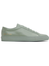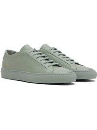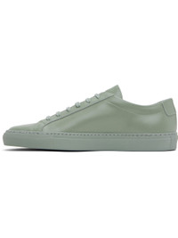Low-top buffed leather sneakers in green. · Lace-up closure · Padded tongue and collar · Signature series stamp at outer side · Buffed leather and suede lining · Treaded rubber sole Supplier color: Vintage green Upper: leather. Sole: rubber. Made in Italy 251133M237070