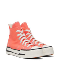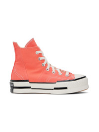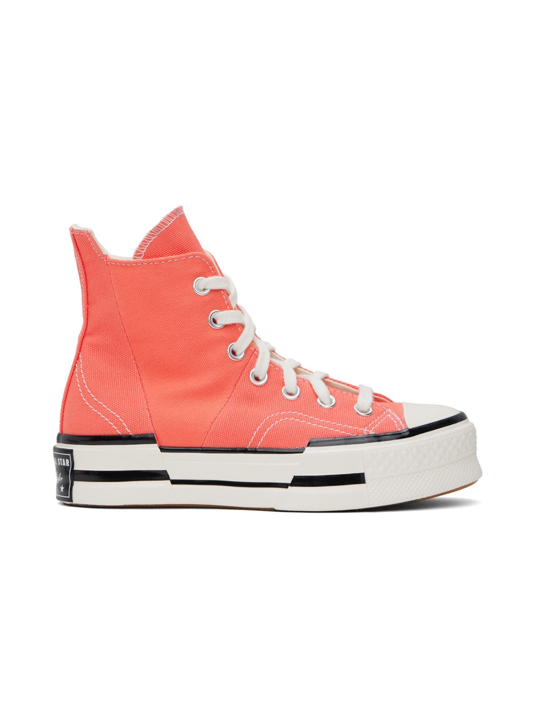 High-top paneled canvas sneakers in pink. · Rubber cap toe · Lace-up closure · Extended tongue and heel collar · Logo patch and eyelets at inner side · Cushioned OrthoLite® footbed · Rubberized logo patch at heel · Treaded rubber sole · Contrast stitching in white Supplier color: Watermelon slushy/White/Black Upper: textile. Sole: rubber. Made in Viet Nam 241799F127064