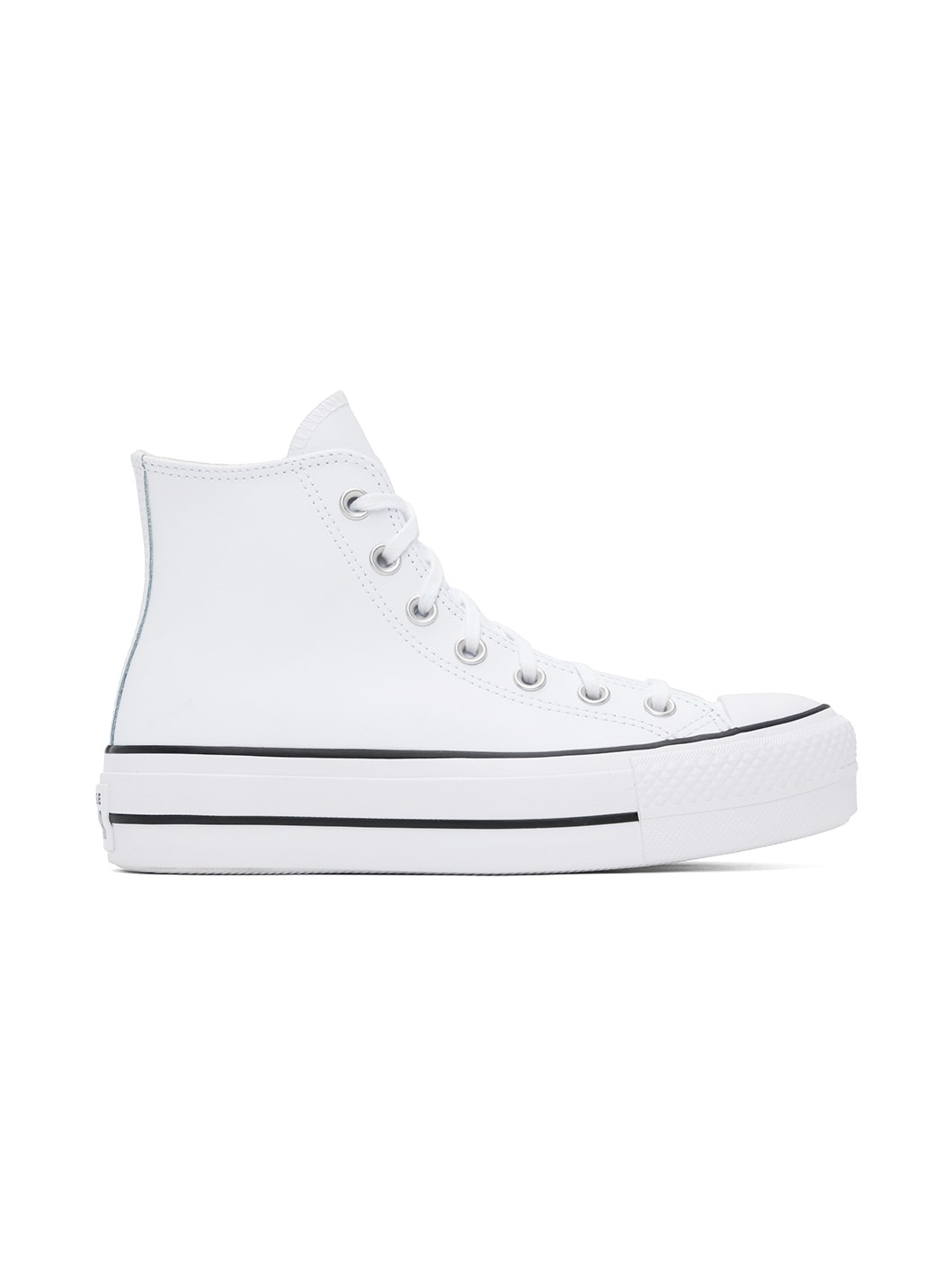 High-top canvas sneakers in white. · Rubber cap toe · Lace-up closure · Logo patch and eyelets at inner side · Rubberized logo patch at heel counter · Cushioned EVA footbed · Treaded rubber platform sole · Platform: H1.5" Supplier color: White/Black/White Upper: textile. Sole: rubber. Made in Viet Nam 242799M236008