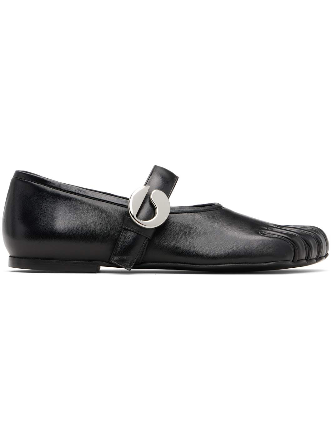 Buffed leather ballerina flats. · Articulated toes · Logo hardware at post-stud strap · Buffed leather lining · Stacked leather heel with rubber injection · Leather sole Supplier color: Black Upper: leather. Sole: leather, rubber. Made in Spain 252325F118003