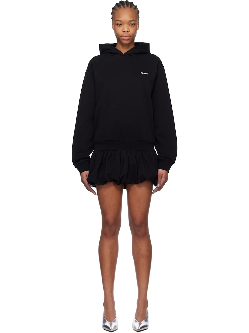 Cotton-blend fleece hoodie-style minidress. · Logo printed at chest · Kangaroo pocket · Integrated ballooned skirt hem · Rib-knit cuffs Supplier color: Black/White print