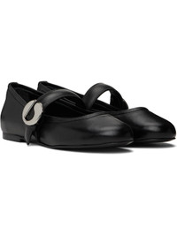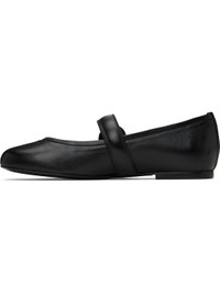 Buffed leather Mary Jane-style ballerina flats in black. · Logo hardware at post-stud strap · Buffed leather lining · Stacked leather heel with rubber injection · Leather sole Supplier color: Black Leather. Made in Spain 251325F118002