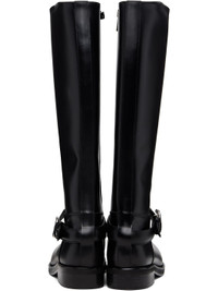 Knee-high buffed leather boots. · Strap with logo hardware at vamp · Zip closure at inner side · Stacked leather block heel · Leather sole with rubber injections Supplier color: Black Upper: leather. Sole: leather, rubber. Made in Spain 252325F115006