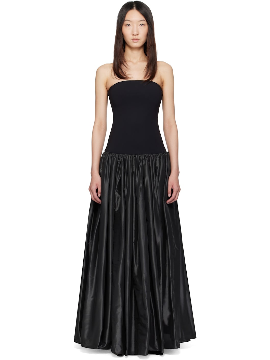 Stretch nylon jersey and polyester taffeta maxi dress. · Straight neck · Gathering at waist · Seam pockets · Zip closure at side seam Supplier color: Black Body 1: 68% polyamide, 32% elastane. Body 2: 100% polyester. Made in France 252325F055000