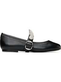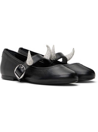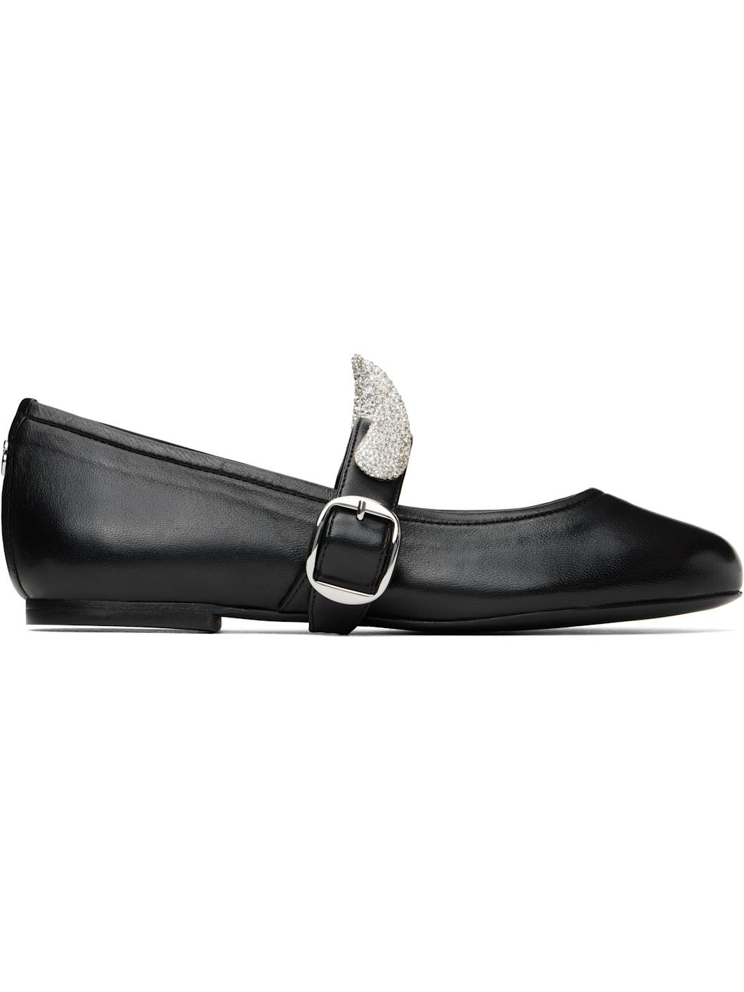 Buffed leather ballerina flats in black. · Crystal-cut graphic appliques at pin-buckle strap · Logo hardware at heel · Polished leather sole with rubber injection Part of the Disney capsule. Supplier color: Black Upper: leather. Sole: leather. Made in Spain 252325F118001