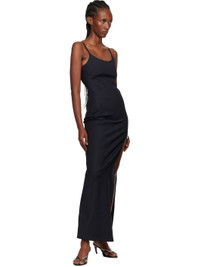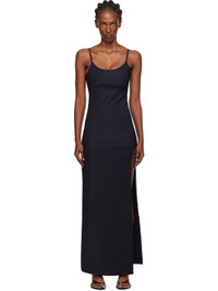 Plain-woven stretch cotton-blend maxi dress. · Scoop neck · Zip closure at side seam · Slit and elasticized post-stud strap at side seam · Adjustable spaghetti straps Supplier color: Black 51% cotton, 44% polyester, 5% elastane. Made in Bulgaria 252325F055002