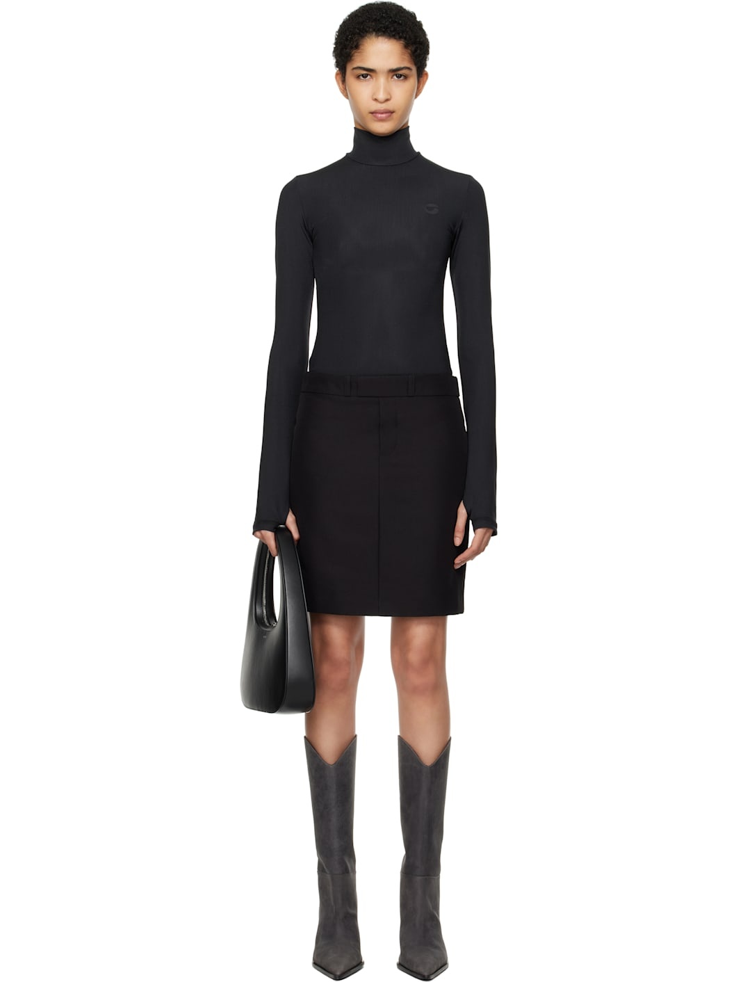 Stretch nylon jersey and twill minidress. · Paneled construction · Turtleneck · Logo bonded at chest · Belt loops at waist · Mock-fly · Mock welt pocket and logo hardware at back · Central vent at back hem · Partial satin lining Supplier color: Black 80% polyamide, 20% elastane. Made in Portugal 242325F052016