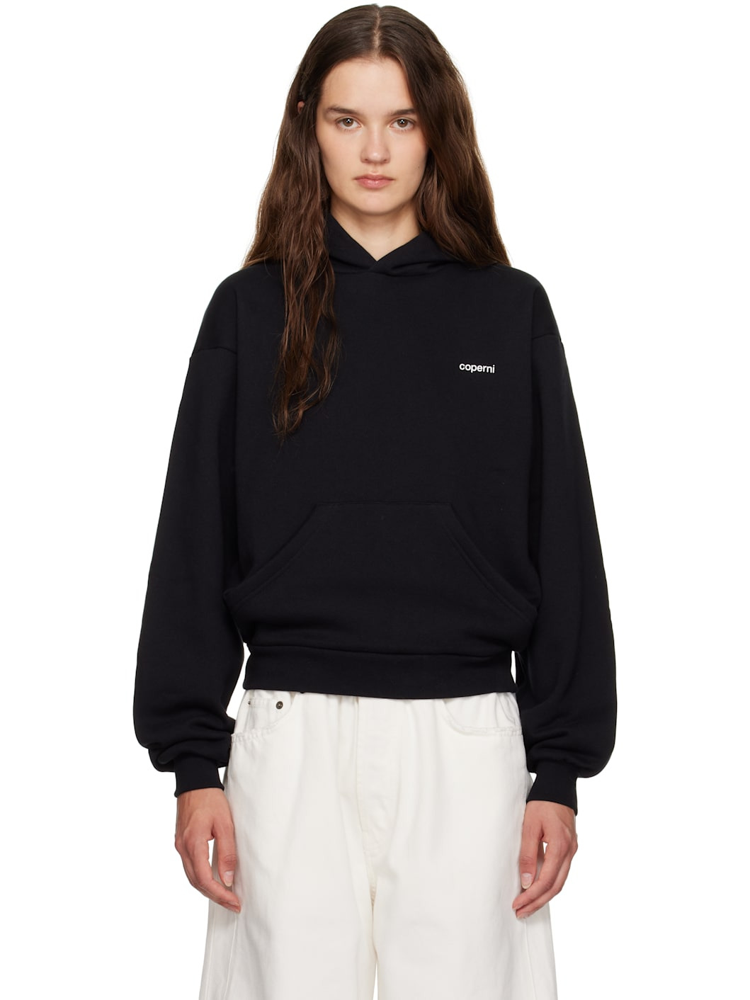 Organic cotton-blend fleece hoodie. · Logo printed at chest and back · Kangaroo pocket at front · Rib-knit hem and cuffs · Dropped shoulders Supplier color: Black 79% organic cotton, 21% polyester. Made in Portugal 252325F097007