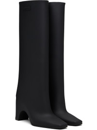 Knee-high rubber boots in black. · Square toe · Logo patch at outer side · Integrated block heel · Rubber sole · Heel: H3.5" Supplier color: Black Upper: rubber. Sole: rubber. Made in Italy 252325F115000