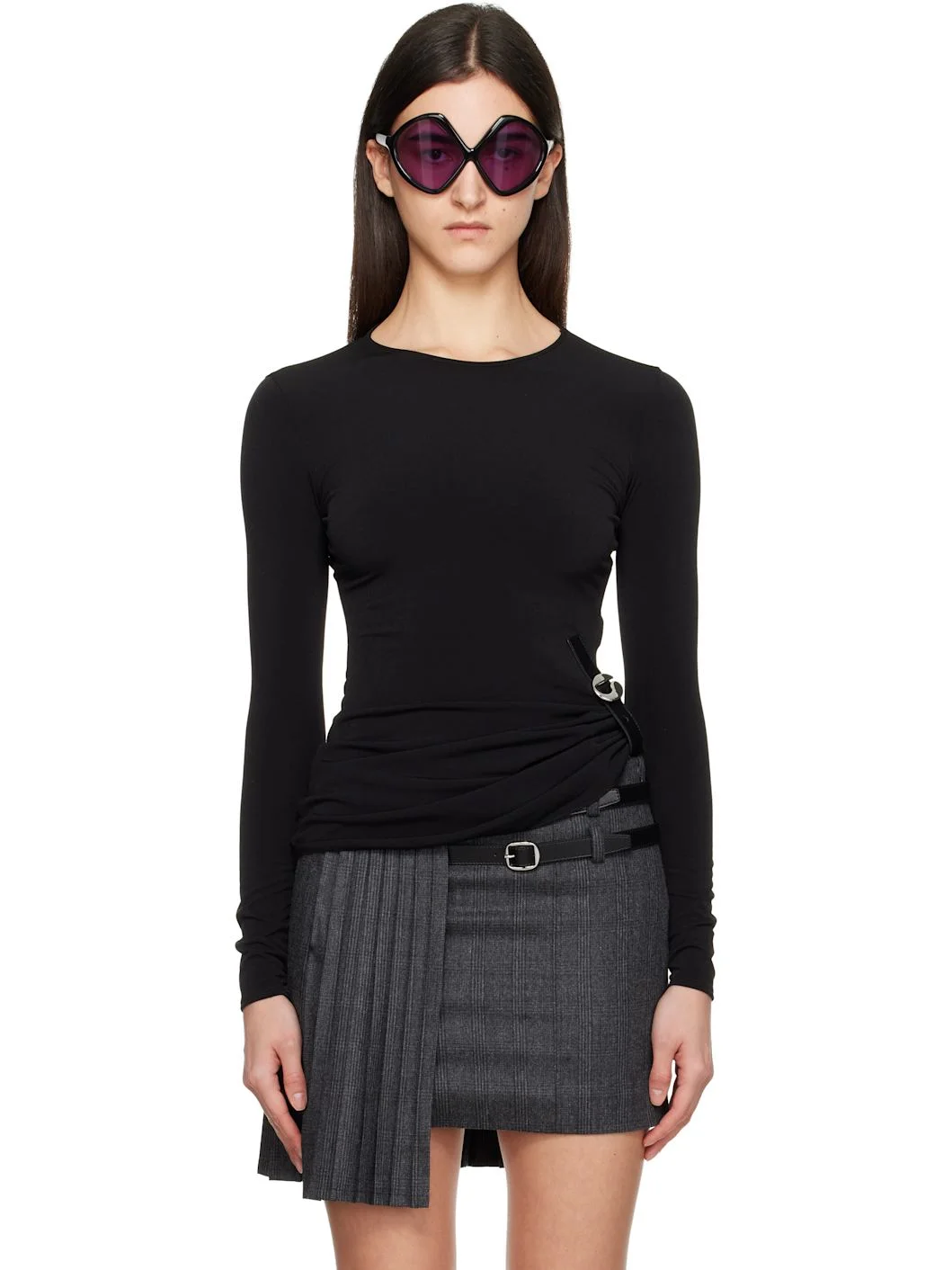 Stretch jersey T-shirt. · Crewneck · Gathering and post-stud strap with logo hardware at hem Supplier color: Black 95% polyester, 5% elastane. Made in France 261325F110001