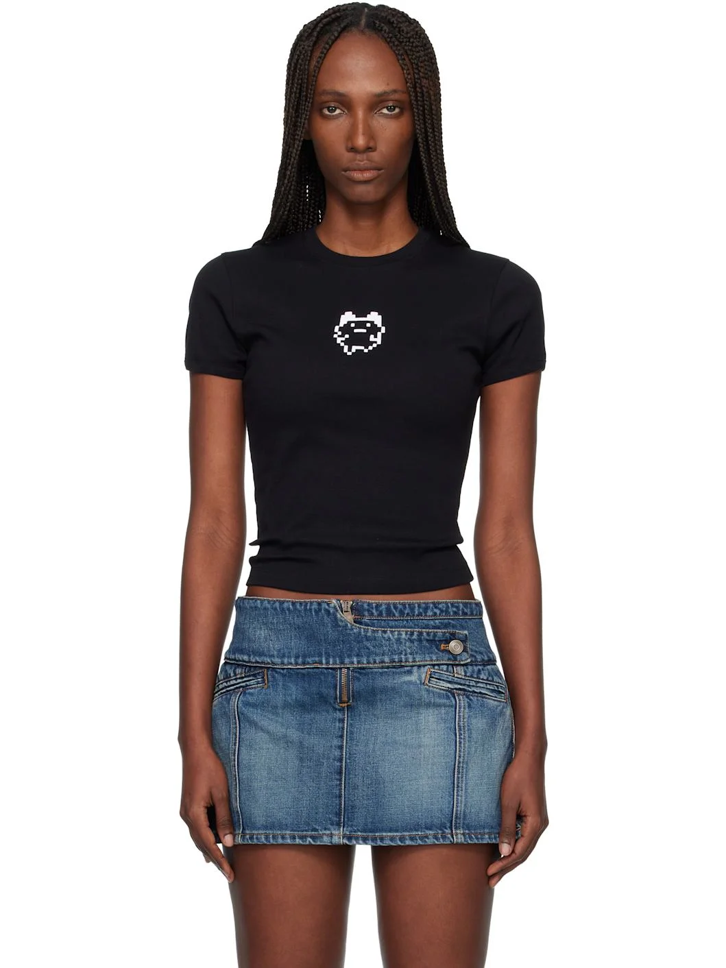 Organic cotton jersey T-shirt. · Rib-knit crewneck · Graphic embroidered at chest · Cropped hem · Logo printed at back Part of the Tamagotchi capsule. Supplier color: Black 100% organic cotton. Made in Portugal 252325F110017