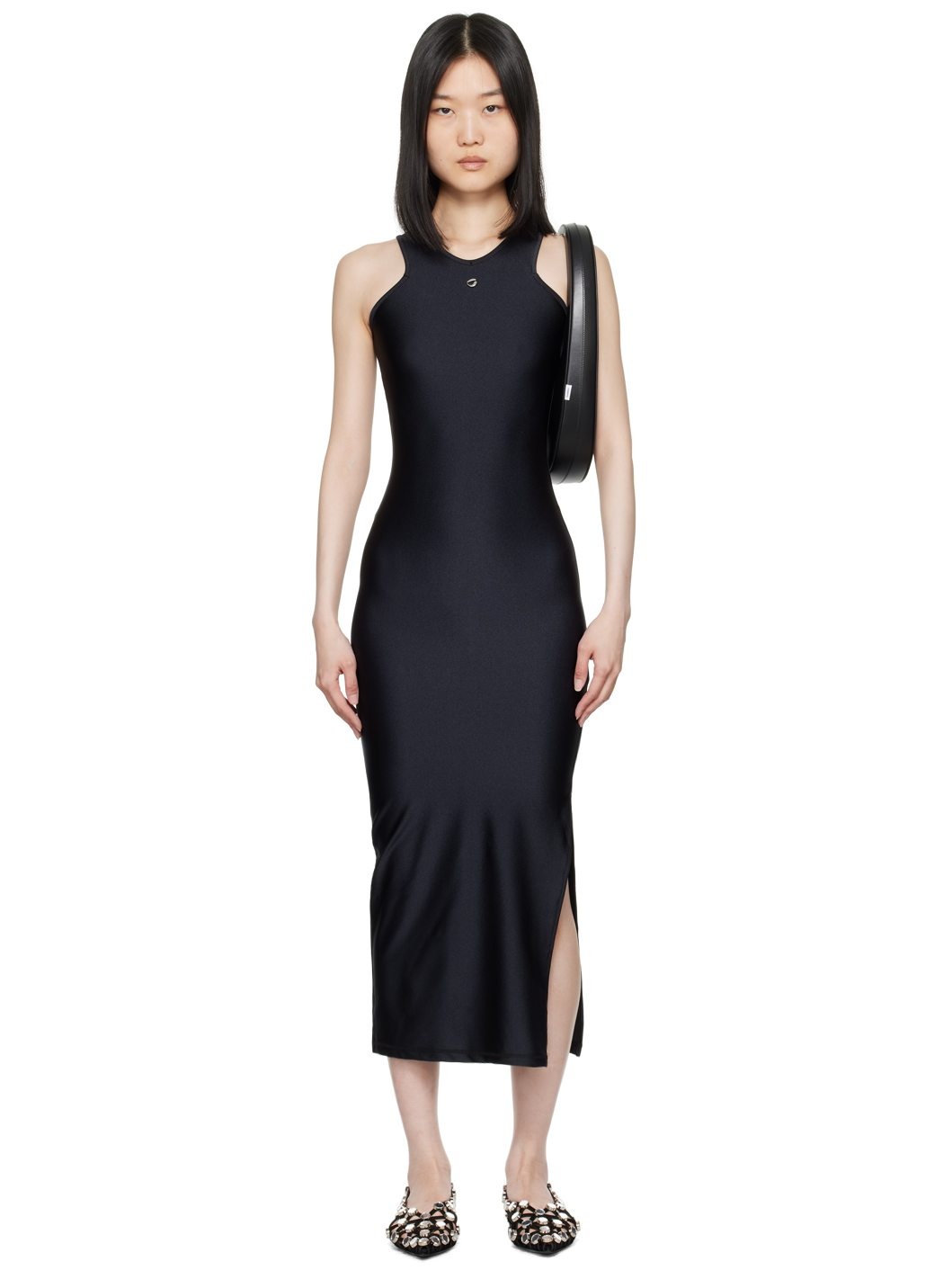 Stretch nylon jersey dress. · Modified V-neck · Logo hardware at chest · Vent at side seam · Racer back · Unlined Supplier color: Black 80% polyamide, 20% silk. Made in Portugal 242325F054009