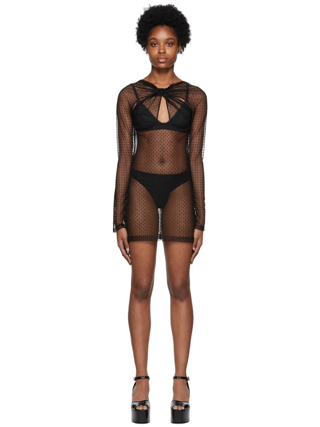 Sheer nylon mesh dress. Jacquard-woven graphic pattern throughout. · Crewneck · Cutouts and twisted detailing at front · Zip closure at back · Unlined Supplier color: Black 100% polyamide. Made in Portugal 222325F052008