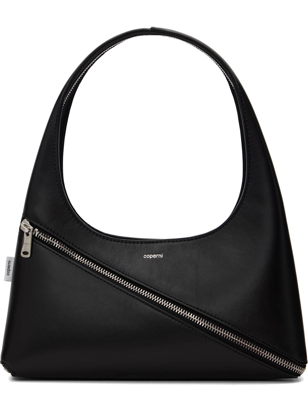 Grained leather shoulder bag. · Fixed shoulder strap · Logo stamp at face · Fixed zipper at face and back face · Logo flag at side · Two-way zip closure · Suede lining · H5" x W10" x D3" Supplier color: Black Leather. Made in Italy 252325F048018