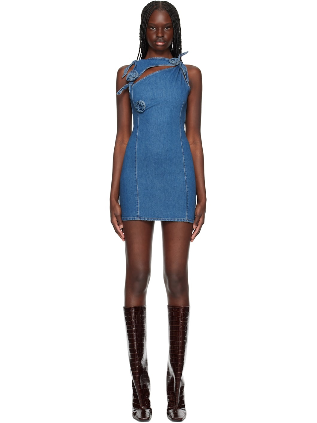 Washed non-stretch denim minidress. Fading throughout. · Boatneck · Cutout and floral appliques at chest · Zip closure at side seam · Self-tie shoulder straps · Contrast stitching in tan Supplier color: Blue vintage 100% cotton. Made in Italy 251325F052003