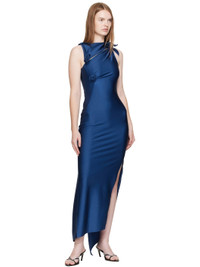 Stretch nylon jersey maxi dress. · Asymmetric construction · Boatneck · Cutout at chest · Floral accents at chest and shoulder · Vented side seams · Self-tie fastening at shoulders Supplier color: Blue isola 80% polyamide, 20% elastane. Made in France 252325F054001