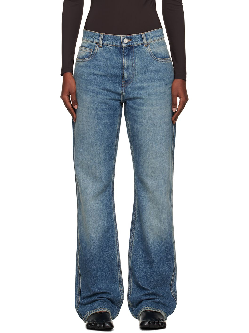 Non-stretch denim jeans. · Fading and whiskering throughout · Loose-fit · Mid-rise · Belt loops · Five-pocket styling · Zip fly · Strap with logo hardware at back pocket · Contrast stitching in tan Supplier color: Blue vintage Body: 100% cotton. Trim: 50% cotton, 50% polyester. Made in Portugal 252325F069000