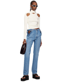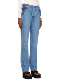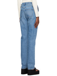 Non-stretch denim jeans. Fading throughout. · Belt loops · Two-pocket styling · Button-fly · Zip-fly at side seams · Adjustable button tab at back waist · Contrast stitching in tan Supplier color: Washed blue 100% cotton. Made in Italy 241325F069001