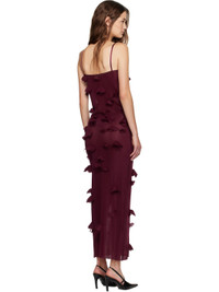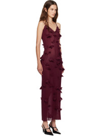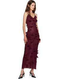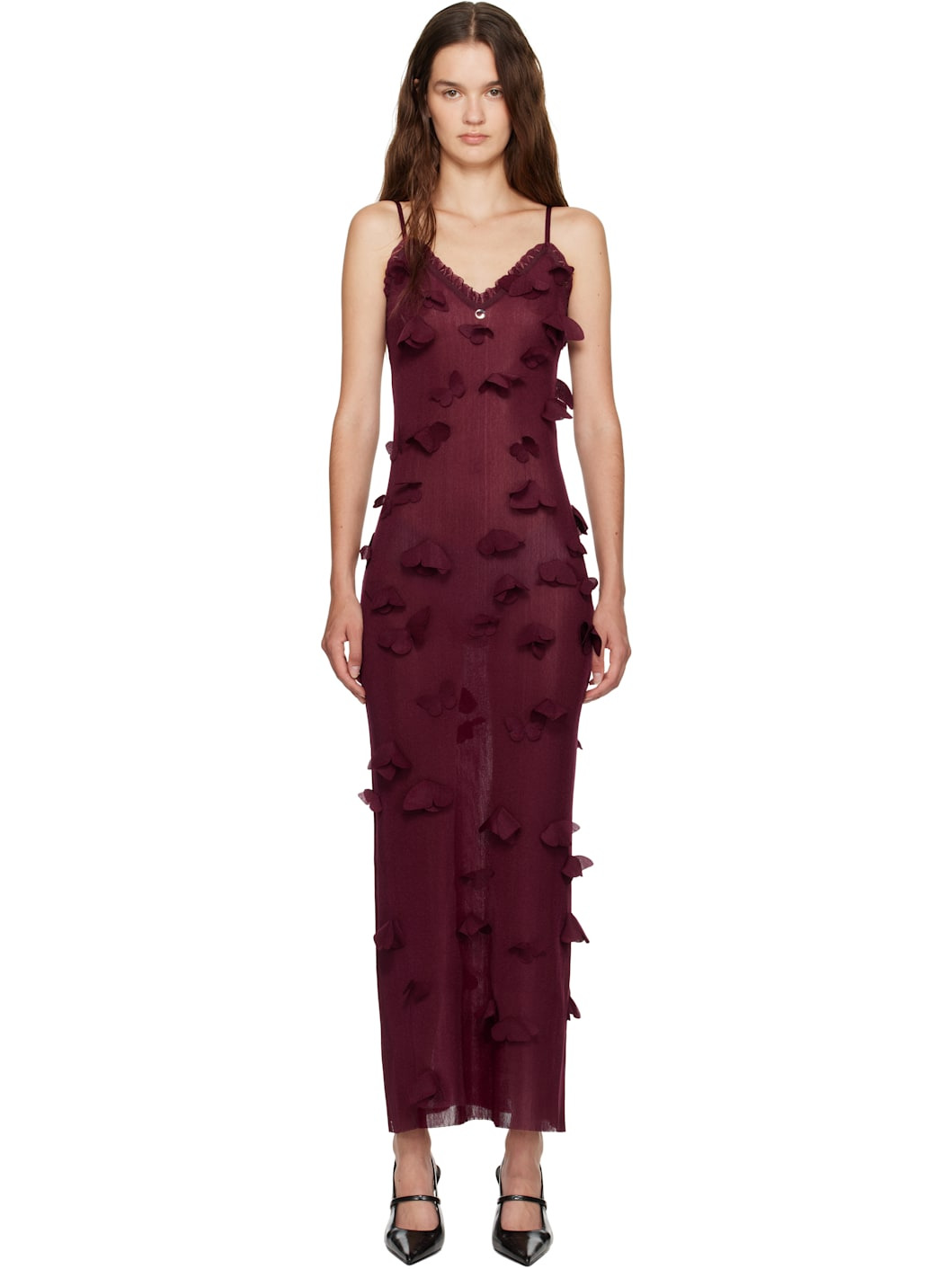 Semi-sheer rib-knit midi dress. · Graphic appliques throughout · Ruffled trim and logo hardware at V-neck · Fixed shoulder straps Supplier color: Red 100% polyester. Made in Italy 252325F054005