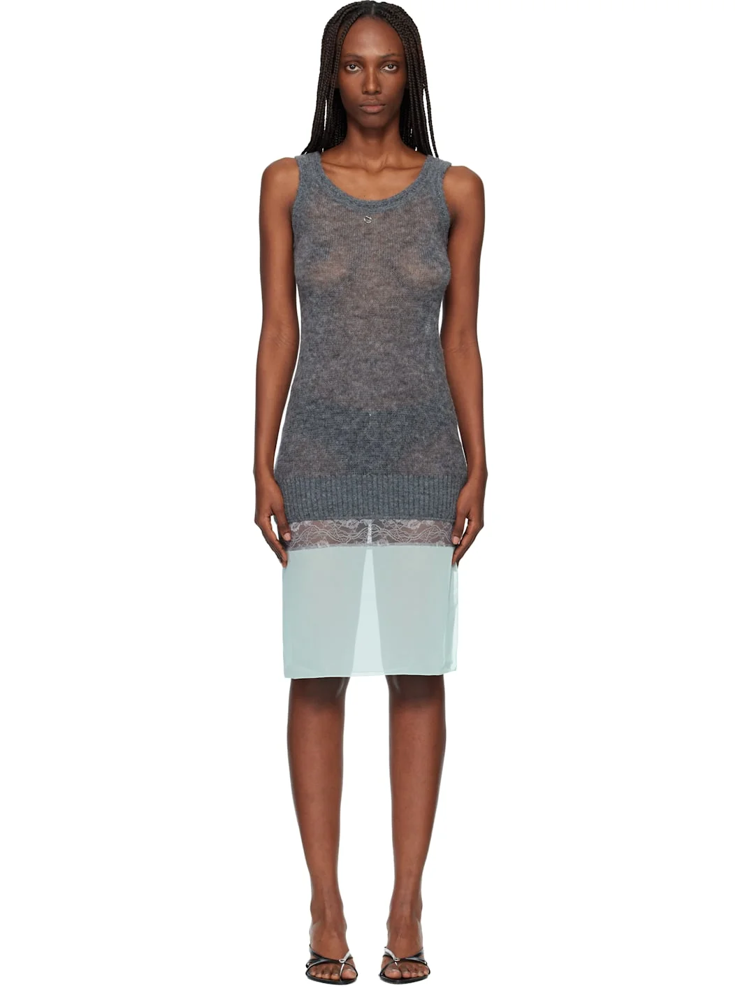Gray & Green Multi-Layer Knit Slip Midi Dress
