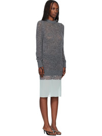 Semi-sheer knit alpaca-blend midi dress. · Rib-knit crewneck and cuffs · Logo hardware at collar · Lace and voile trim at hem · Raglan sleeves · Logo-printed elasticized loop at cuffs Supplier color: Grey Body: 45% polyamide, 30% alpaca, 25% merino wool. Trim 1: 100% polyester. Trim 2: 88% polyamide, 12% rayon. Made in Italy 252325F054013
