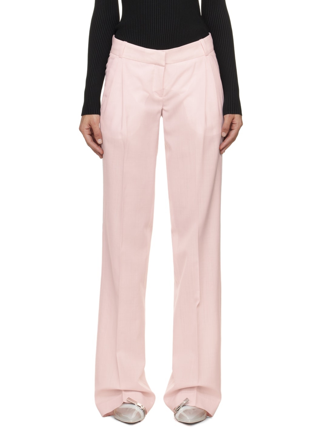Loose-fit virgin wool delaine trousers. Glen check pattern throughout. · Low-rise · Belt loops · Three-pocket styling · Zip-fly · Pleats at front · Creased legs · Logo hardware at back pocket Supplier color: Pink/White 100% virgin wool. Made in Portugal 241325F087005