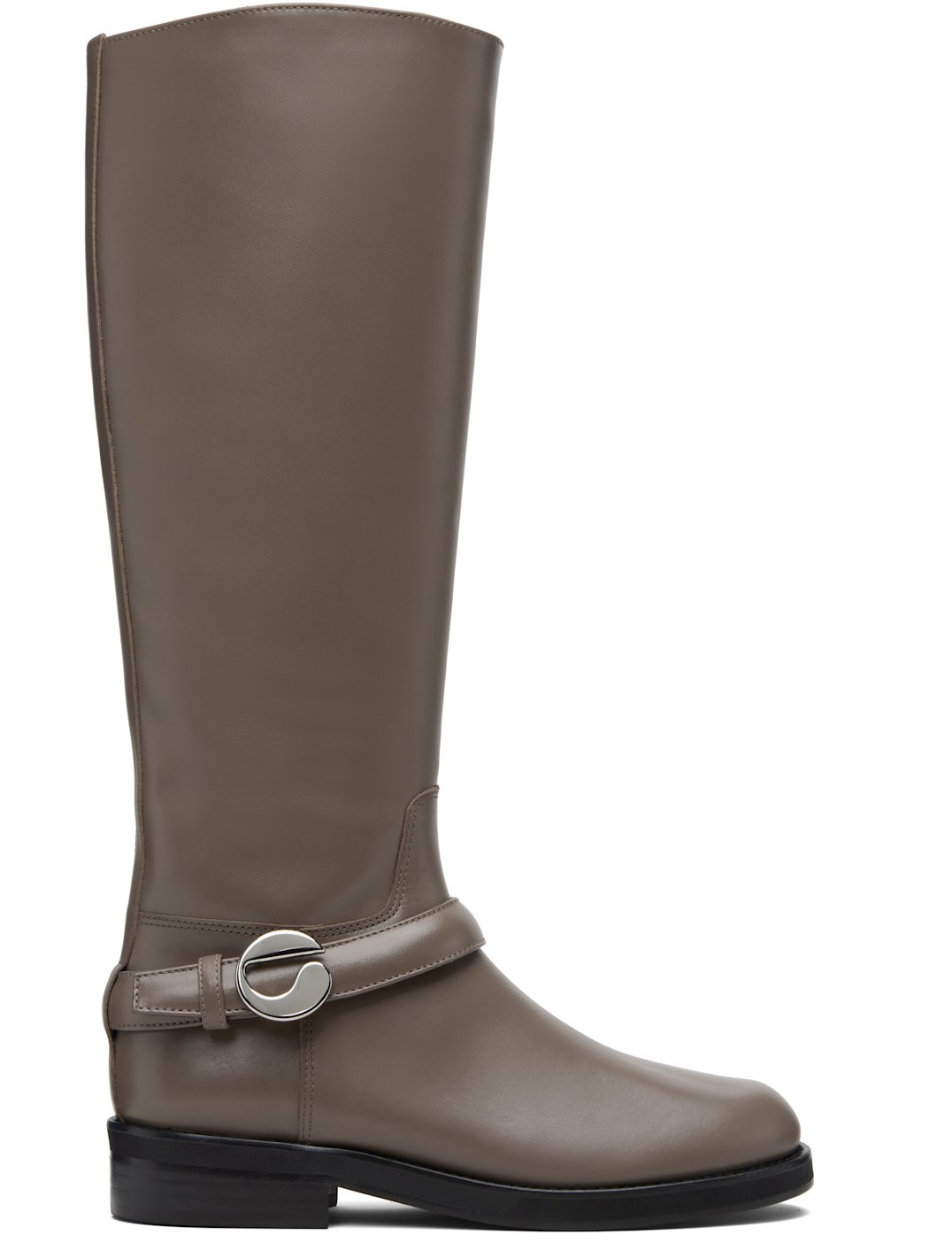 Knee-high buffed leather boots. · Strap with logo hardware at vamp · Zip closure at inner side · Stacked leather block heel · Leather sole with rubber injections Supplier color: Brown Upper: leather. Sole: leather, rubber. Made in Spain 252325F115005