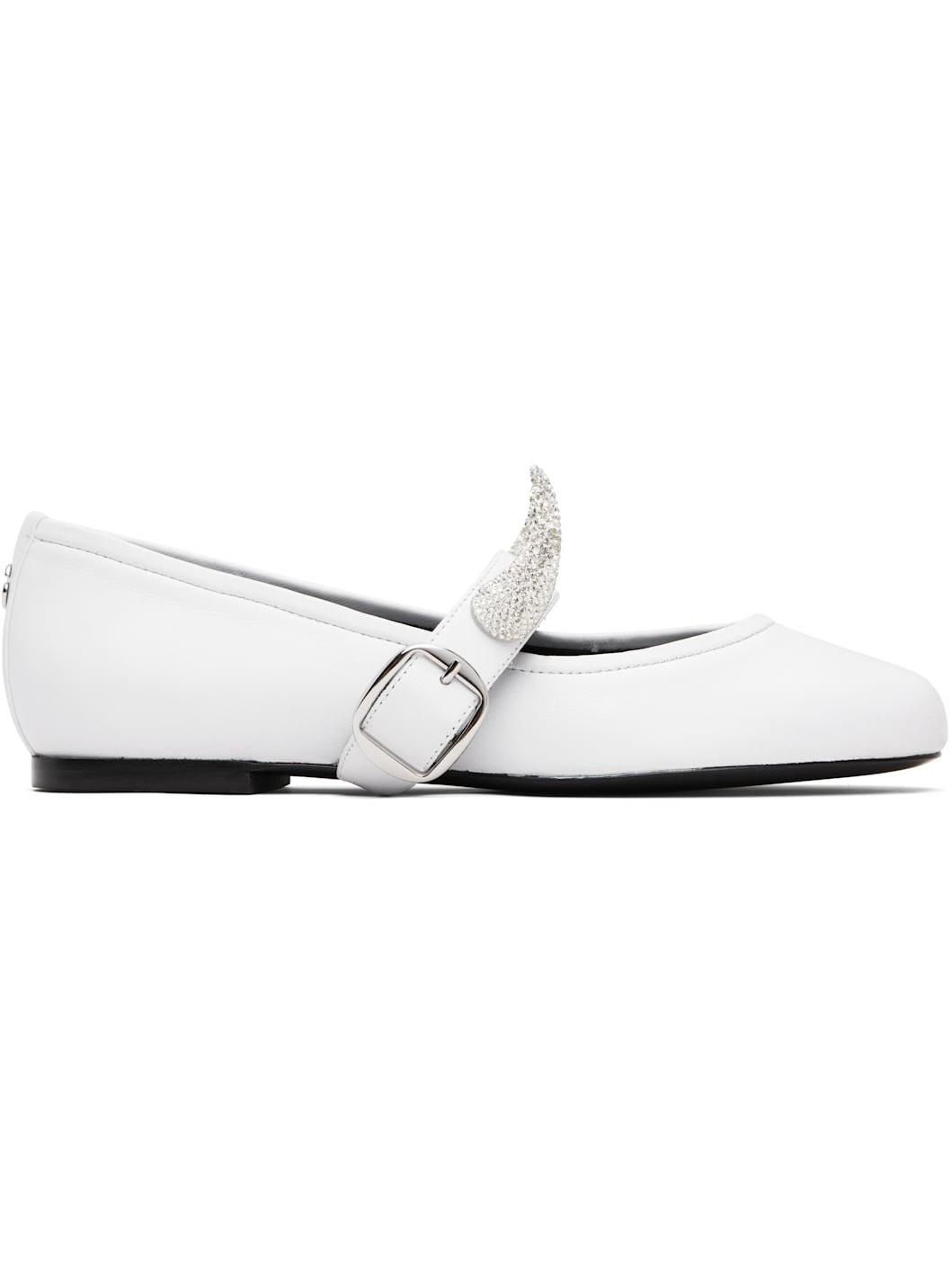 Grained leather ballerina flats. · Pin-buckle strap at vamp · Horn hardware with crystals at strap · Logo hardware at heel tab · Leather sole with rubber injection Part of the Disney capsule. Supplier color: White/Silver Upper: leather. Sole: leather, rubber. Made in Spain 252325F118004