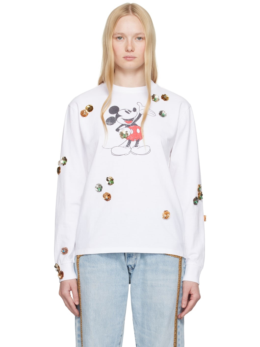 Organic cotton jersey T-shirt. Sequinned floral appliques throughout. · Rib-knit crewneck and cuffs · Graphic printed at front Part of the Disney capsule. Supplier color: White/Multicolor 100% organic cotton. Made in Portugal 252325F110001