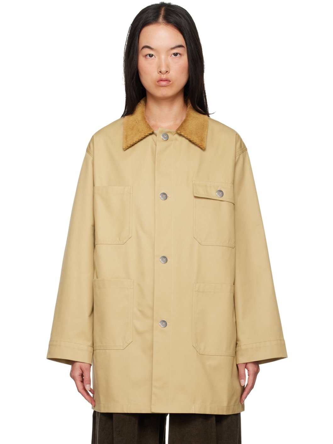 Loose-fit cotton-blend twill jacket. · Corduroy spread collar · Button closure · Flap pocket and patch pockets · Logo flag at front · Unlined Supplier color: Beige 50% cotton, 39% polyester, 11% polyamide. Made in Spain 242909F063001