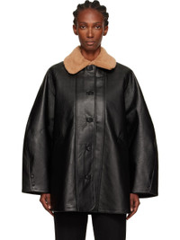 Crinkled faux-leather coat. Camel- and silk-blend fleece spread collar. · Button closure · Welt pockets at waist · Raglan sleeves · Button fastening at cuffs · Unlined Supplier color: Black Body: 60% polyester, 40% polyurethane. Trim: 67% camel, 33% silk. Made in Spain 252909F058001