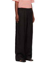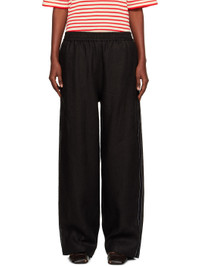 Linen twill trousers. · Straight-leg · Elasticized waistband · Lace trim and contrast stitching at outseams · Mock pockets at back Supplier color: Black 100% linen. Made in Spain 251909F087015