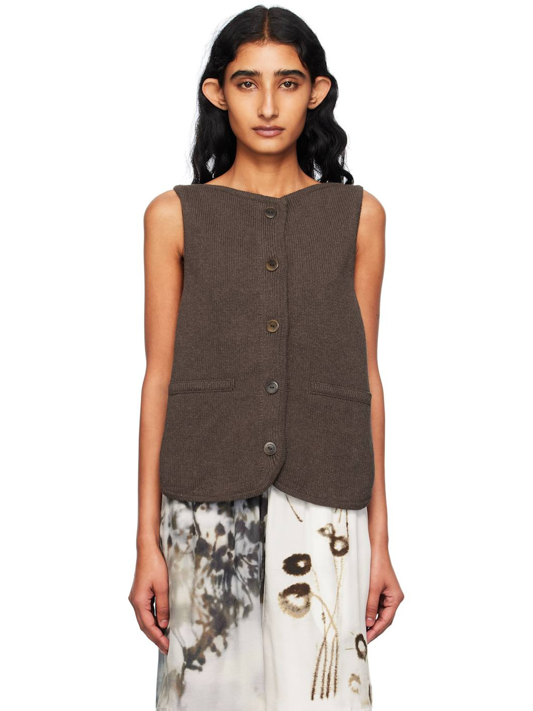 Knit ECOTEC® recycled cotton-blend cardigan. · GRS- and OEKO-TEX® Standard 100-certified · Boatneck · Button closure · Mock welt pockets at front · Shirttail hem · Logo-engraved hardware Supplier color: Brown 80% recycled cotton, 20% recycled polyester. Made in Spain 251909F095020