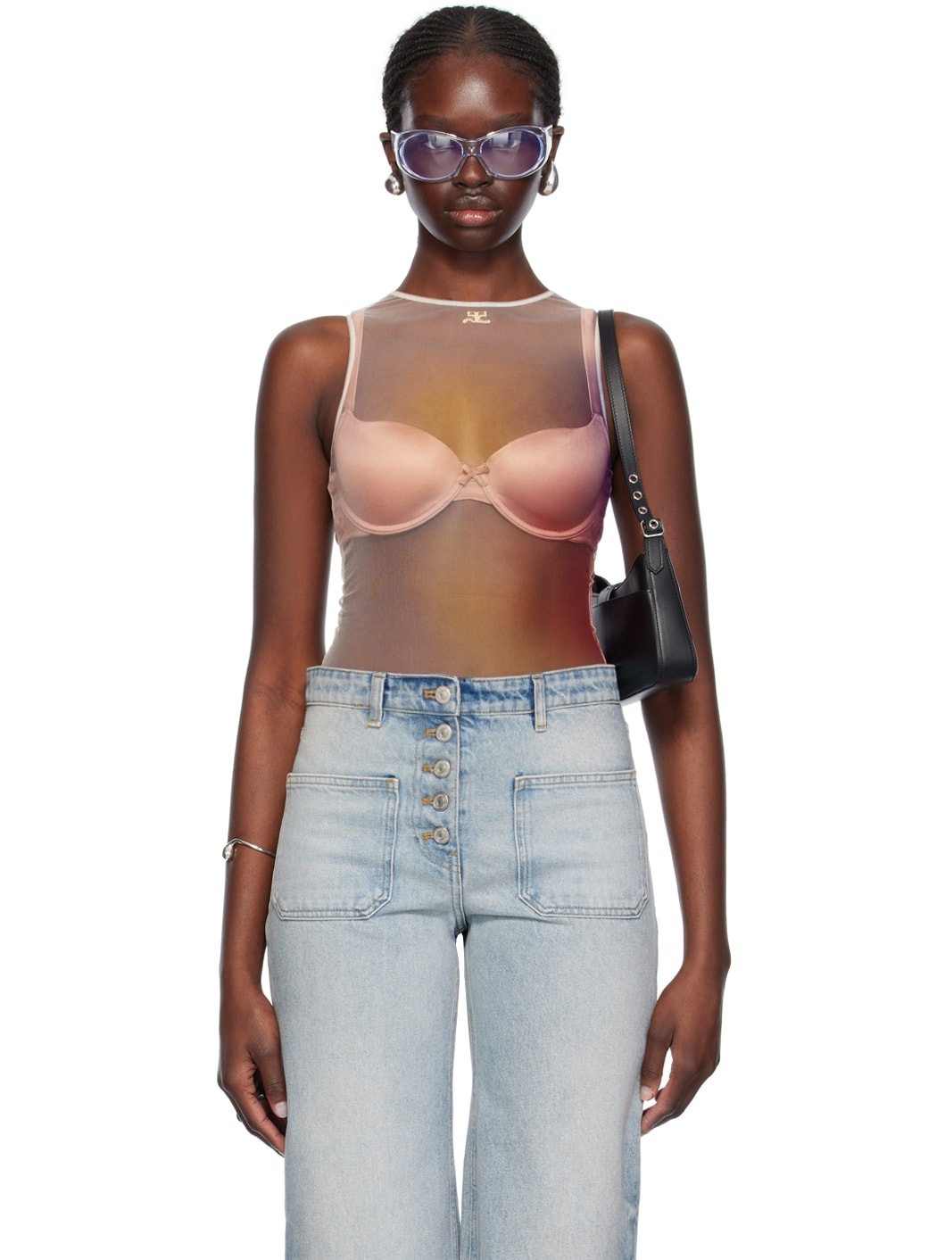Sheer stretch nylon tulle bodysuit. Iridescent effect throughout. · Embroidered logo patch at round neck · Press-stud fastening at bottom Supplier color: Caramel 90% polyamide, 10% elastane. Made in Italy 241783F358000