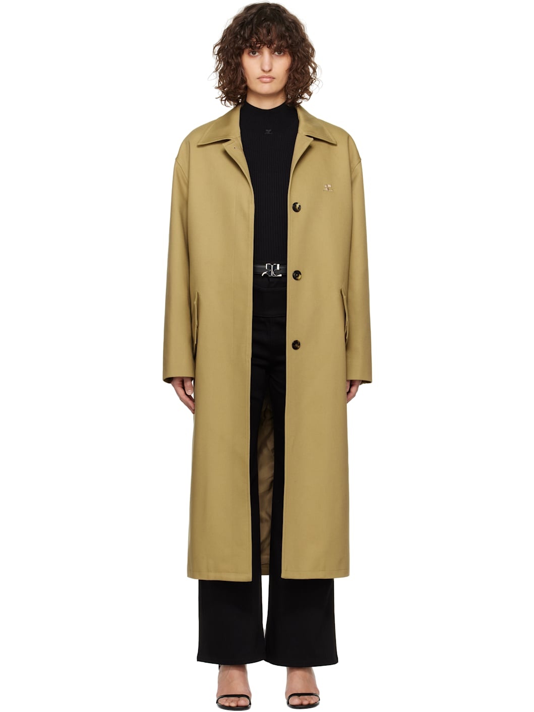 Cotton-blend twill coat. · Spread collar · Concealed button closure · Embroidered logo patch at chest · Flap pockets · Belt loops and buttoned strap at back · Central vent at back hem · Full satin lining Supplier color: Beige Body: 50% cotton, 50% polyester. Lining: 100% viscose. Made in Lithuania 251783F059002