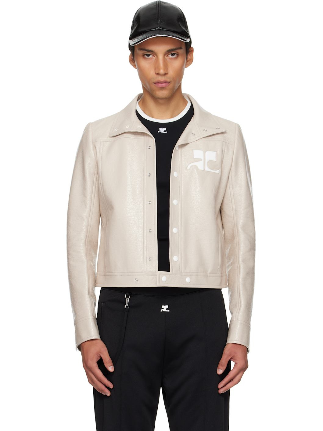 Crinkled stretch vinyl jacket. · Spread collar · Press-stud closure · Inset faux-leather logo patch at chest · Welt pockets at waist · Press-stud barrel cuffs · Welt pocket at interior · Full satin lining Part of the Reedition collection. Supplier color: Mastic grey Body: 88% cotton, 10% polyurethane, 2% elastane. Trim: 55% polyamide, 25% polyurethane, 20% elastane. Lining: 100% cupro. Made in Slovakia (Slovak Republic) 252783M180001