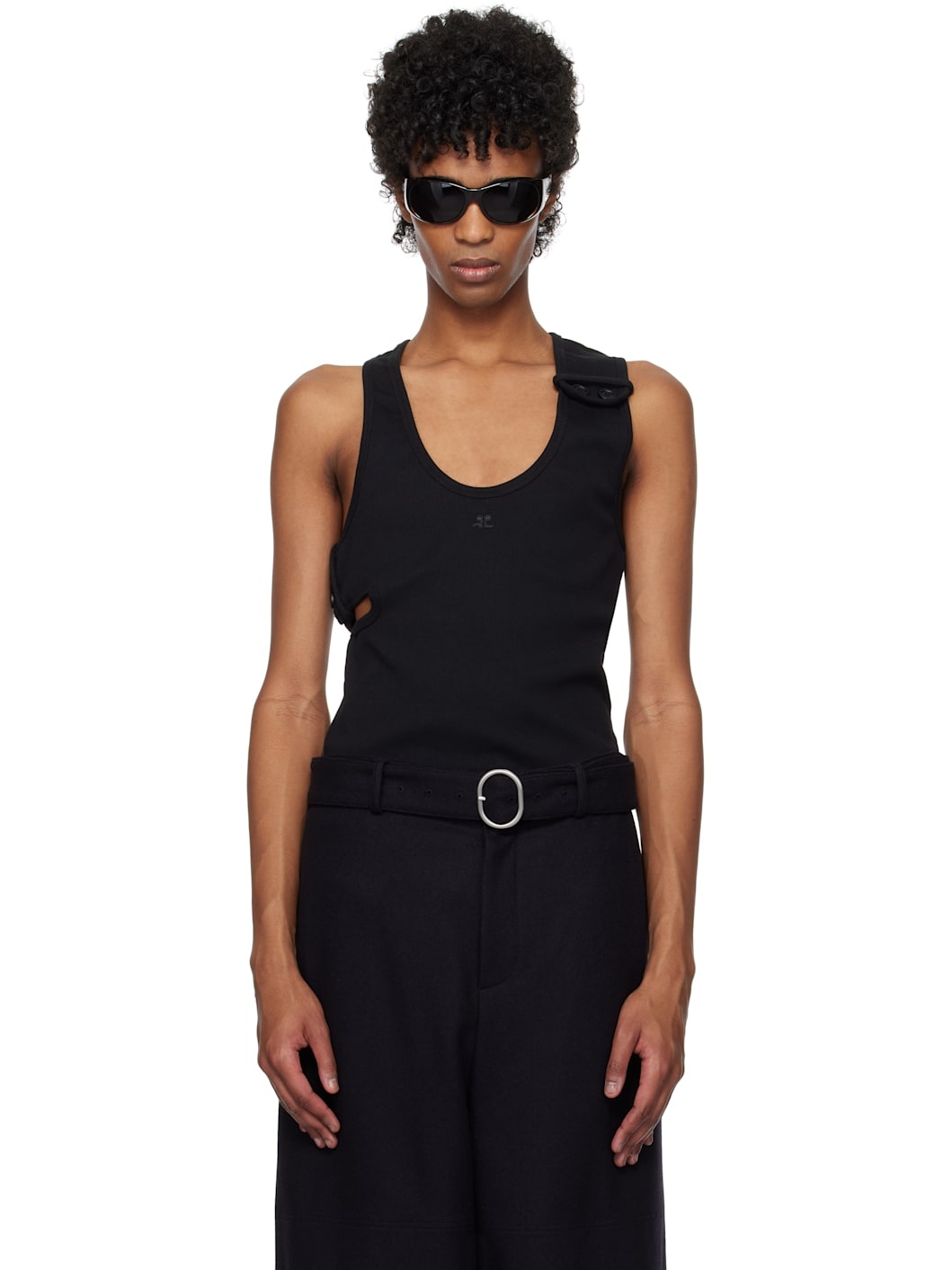 Rib-knit stretch cotton tank top. · Scoop neck · Logo embroidered at chest · Button fastening at front and side · Cutout at side · Racerback Supplier color: Black 98% cotton, 2% elastane. Made in Portugal 251783M214008
