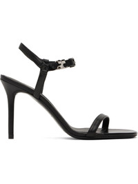 Buffed sheepskin heeled sandals in black. · Open toe · Strap at vamp · Logo hardware at pin-buckle ankle strap · Logo printed at padded footbed · Covered stiletto heel with rubber injection · Leather sole · Heel: H3.5" Supplier color: Black Upper: sheepskin. Sole: leather. Made in Italy 251783F125001